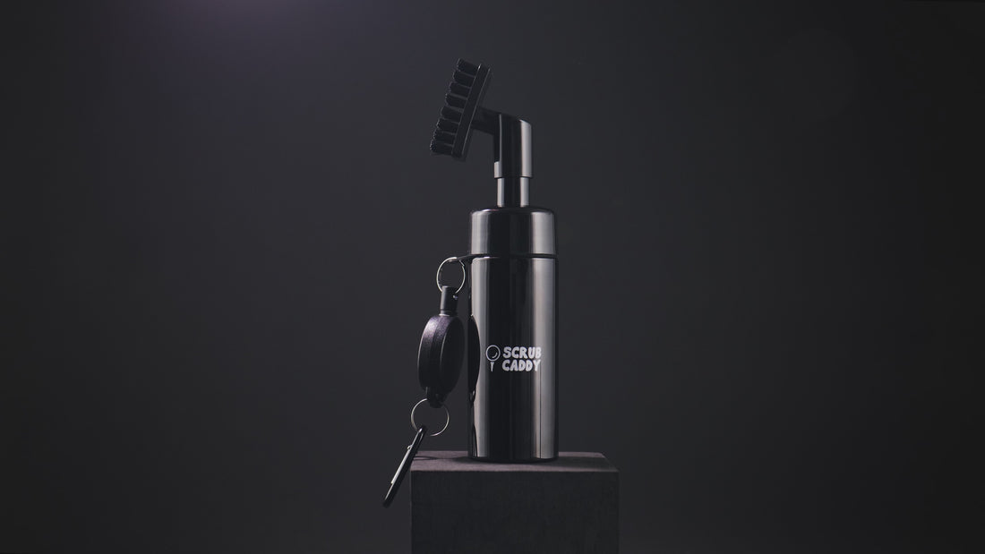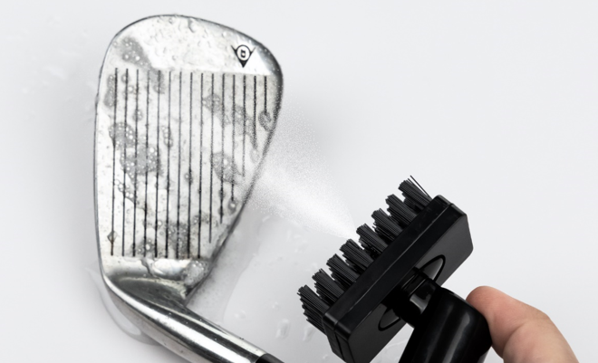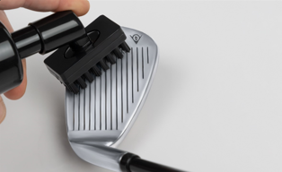 Use the brush head to remove stubborn grass, mud and sand from the club head